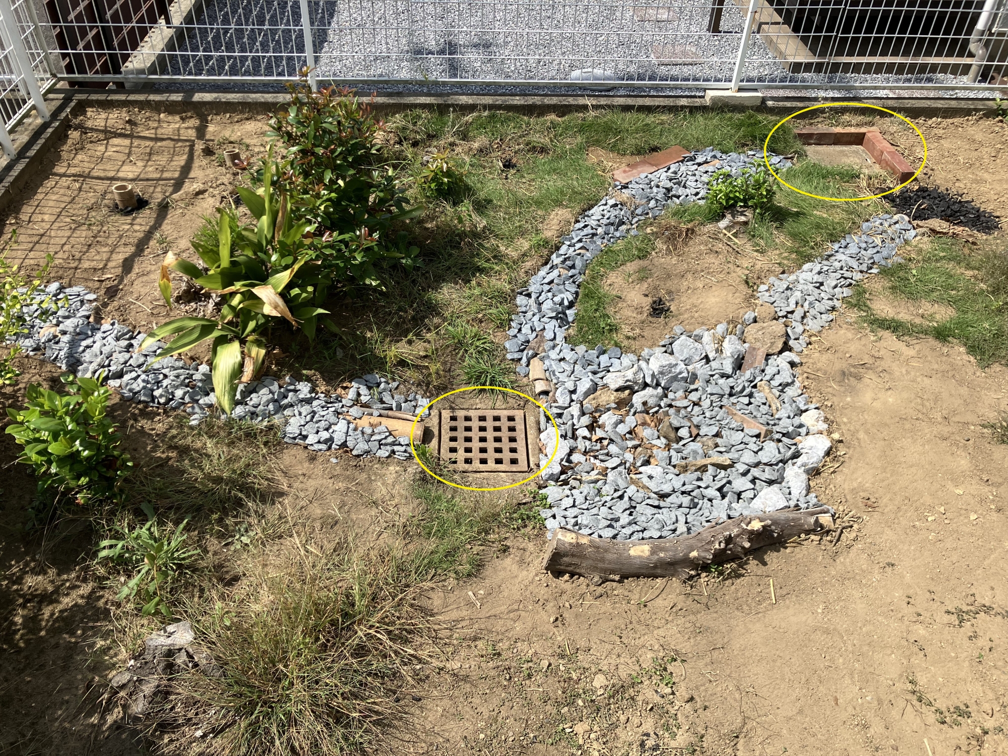 お庭の水はけが悪く、ゲリラ豪雨の際など一気に水が溜まって、それが隣家の敷地に入りそうで気が気でない・・・